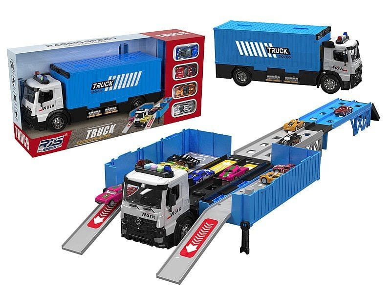 Ciężarówka Adar z rozkładaną naczepą, tworzącą parking, 4 autka, światło, dźwięk (619371)