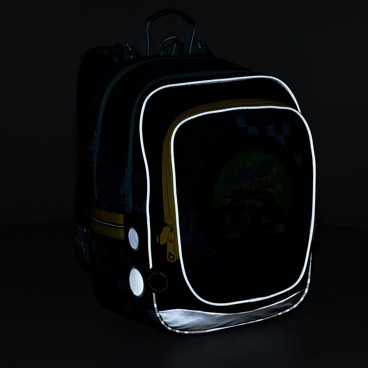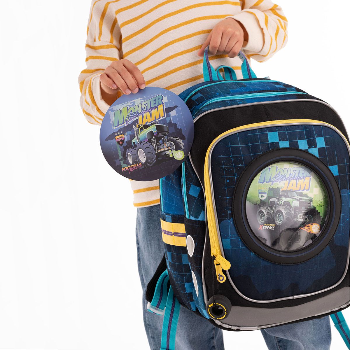 Szukasz plecaka z monster truckiem? W modelu ENDY znajdziesz aż 3 różne obrazki samochodów, które możesz wymieniać. Wszystkie obrazki są dołączone do plecaka i znajdują się w specjalnej okrągłej kieszeni na przodzie. Możesz też narysować własny obrazek i umieścić w okienku z przodu plecaka. A przy zamku plecaka znajdziesz przywieszkę - gumową oponę. Nieźle, co?