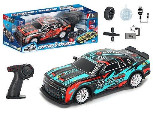 Samochód 1:14 na radio, driftujące, światła Led, funkcja pary z wydechu, dodatkowe koła cm Adar (630970)